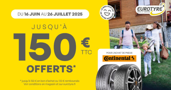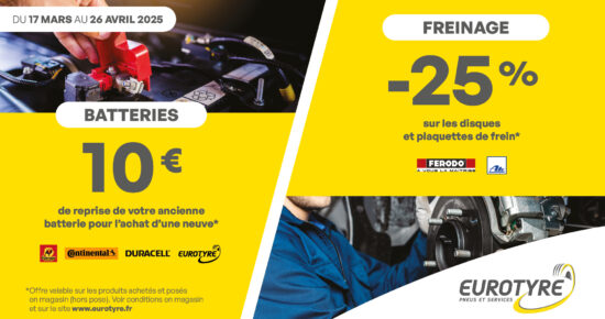 Pour retrouver toutes les promotions en cours, rendez-vous sur le site Eurotyre dans la rubrique « Promotions » ou sur les différents réseaux sociaux (Facebook, Instagram et Google).